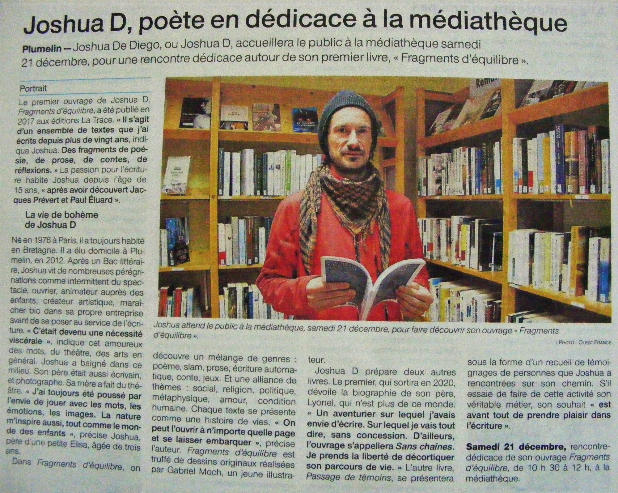 - FRAGMENTS D’ÉQUILIBRE – essai poétique – éditions La trace, 2017